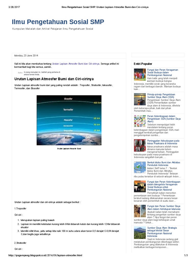 Lapisan atmosfer dan fungsi, serta penjelasannya secara lengkap dan benar dapat kalian baca di web indonesiastudents.com.
